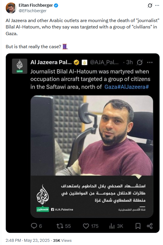 Incitement #37Al Jazeera and other Arabic outlets are mourning the death of "journalist" Bilal Al-Hatoum, who they say was targeted with a group of "civilians" in Gaza. But is that really the case? 🧵