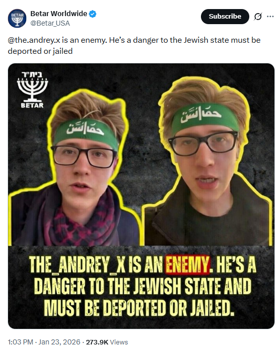 Incitement #98@the.andrey.x is an enemy. He’s a danger to the Jewish state must be deported or jailed